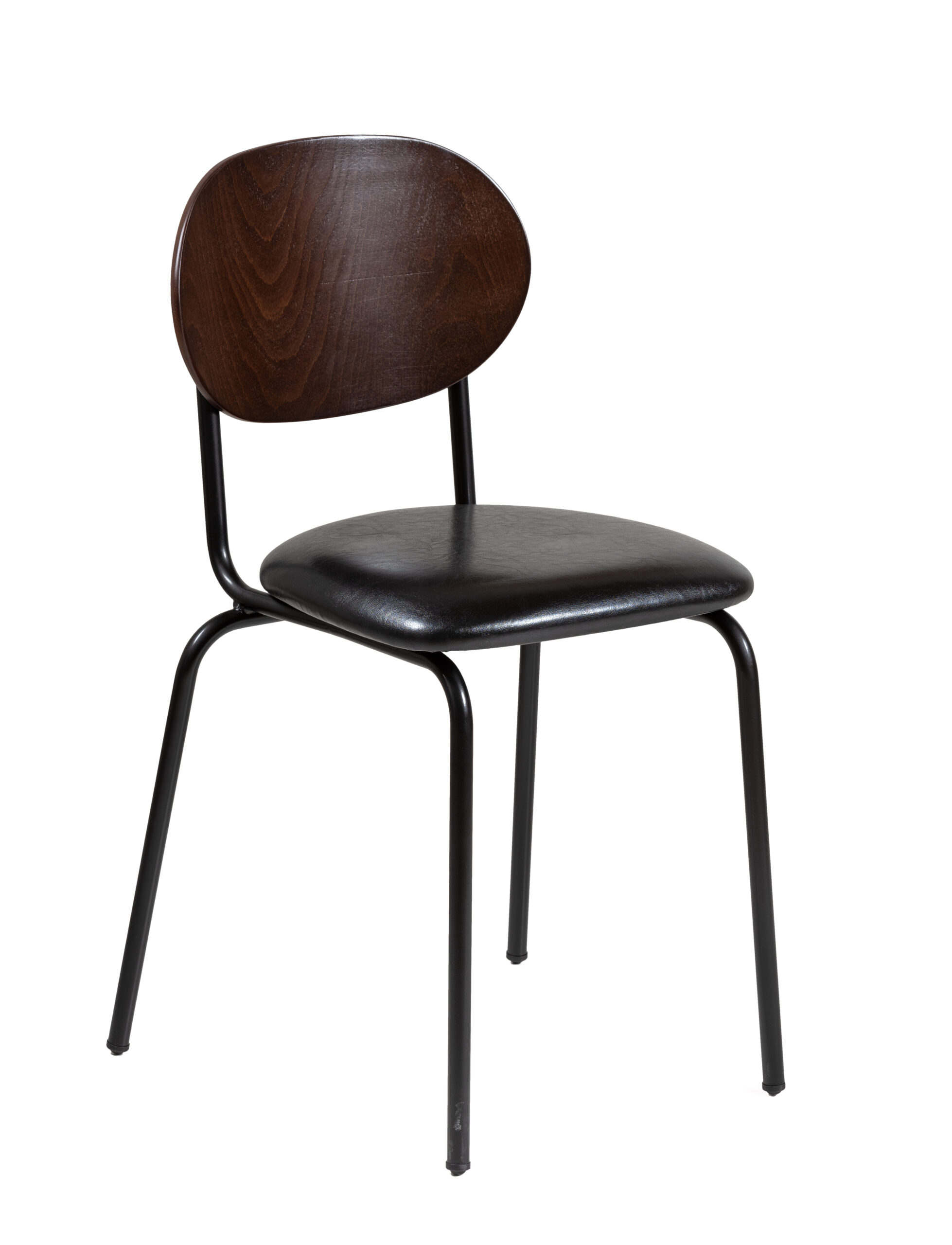 Asiento tapizado. Respaldo de madera barnizada en diversos tonos de barniz.